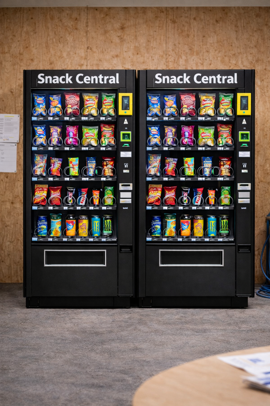 We regularly restock and maintain our machines, ensuring you always have fresh snacks and drinks available.